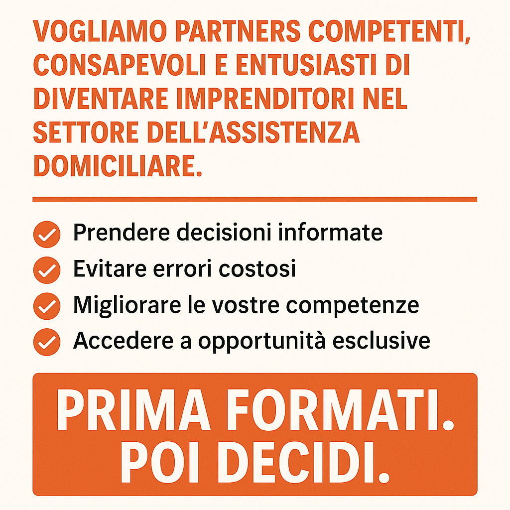Per questo motivo chiediamo un investimento consapevole per un futuro imprenditoriale nel settore dell’assistenza domiciliare